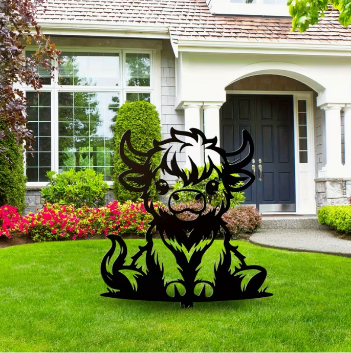 - Iconic Highland Charm 🎨:This laser-cut steel stake captures the fluffy, endearing look of a Scottish Highland calf. Its bold black silhouette stands out beautifully against grass, flowers, or mulch, adding a touch of whimsy to your lawn, garden, or flower bed.