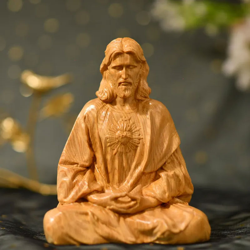 This exquisite statue depicts Jesus Christ in contemplative repose, embodying His divine love and mercy.