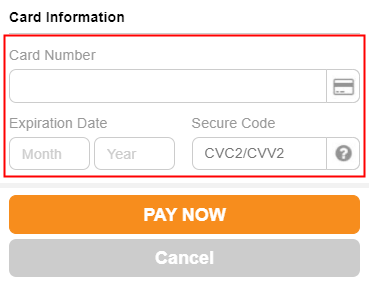 If you checkout with a Debit / Credit Card, just enter your *Card Number, *Expiration Date, and *Secure Code.